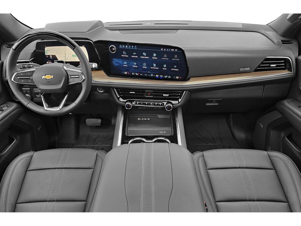 This 2026 Chevrolet Tahoe High Country in Polar White Tricoat comes nicely equipped with the following features: EcoTec3 6.2L V8 10-Speed Automatic with Overdrive 4WD 4WD, Hvb Leather, 10 Speakers, 15 Diagonal Multi-Color Head-Up Display, 1st and 2nd Row Color-Keyed Carpeted Floor Mats, 3-Spoke Wrapped Steering Wheel, 3.23 Rear Axle Ratio, 3rd Row 60/40 Power-Folding Split-Bench Seat, 3rd row seats: split-bench, 4-Way Power Driver Lumbar Seat Adjuster, 4-Way Power Front Passenger Lumbar Seat Adjuster, 4-Wheel Disc Brakes, 8-Way Power Driver Seat Adjuster, 8-Way Power Front Passenger Seat Adjuster, ABS brakes, Adaptive suspension, Air Conditioning, Alloy wheels, AM/FM radio: SiriusXM with 360L, Apple CarPlay/Android Auto, Auto High-beam Headlights, Auto-dimming door mirrors, Auto-dimming Rear-View mirror, Auto-leveling suspension, Automatic temperature control, Bose 10-Speaker Centerpoint Surround Audio System Feature, Brake assist, Bright Front and Rear Door Sill Plates, Bumpers: body-color, Chrome Door Handles with Body-Color Strip, Color-Keyed Carpeting Floor Covering, Compass, Delay-off headlights, Driver and Front Passenger Heated and Ventilated Seats, Driver door bin, Driver vanity mirror, Dual Exhaust System, Dual front impact airbags, Dual front side impact airbags, Electronic Stability Control, Emergency communication system: OnStar and Chevrolet connected services capable, Exterior Parking Camera Rear, Floor Console, Four wheel independent suspension, Front anti-roll bar, Front Bucket Seats, Front Center Armrest, Front dual zone A/C, Front fog lights, Front LED Fog Lamps, Front reading lights, Frontal Driver and Outboard Passenger Airbags, Fully automatic headlights, Garage door transmitter, Heads-Up Display, Heated 2nd Row Outboard Seats, Heated door mirrors, Heated Driver and Front Passenger Seats, Heated front seats, Heated rear seats, Heated Steering Wheel, Heated steering wheel, Illuminated entry, Inside Rearview Auo-Dimming Rear Camera Mirror, Interior Camera, Key Card, LED Headlamps with LED Daytime Running Lamps, LED Tail Lamps, Low tire pressure warning, Magnetic Ride Control Suspension, Memory seat, Memory Settings, Navigation system: Google built-in compatibility (select service plan required, terms and limitations apply), Occupant sensing airbag, Outside Heated Power-Adjustable Mirrors, Outside temperature display, Overhead airbag, Overhead console, Panic alarm, Passenger door bin, Passenger vanity mirror, Perforated Leather Seat Trim, Power door mirrors, Power driver seat, Power Liftgate, Power passenger seat, Power Release 2nd Row Bucket Seats, Power steering, Power Tilt and Telescopic Steering Column, Power windows, Premium audio system: Chevrolet Infotainment 3 Premium, Radio data system, Radio: 17.7 Diagonal Advanced Color LCD Display, Rain sensing wipers, Rear air conditioning, Rear anti-roll bar, Rear Power Liftgate, Rear reading lights, Rear window defroster, Rear window wiper, Remote keyless entry, Remote Start, Security system, Set of 4 Wheel Locks, SiriusXM with 360L Trial Subscription, Speed control, Speed-sensing steering, Split folding rear seat, Spoiler, Steering wheel memory, Steering wheel mounted audio controls, Tachometer, Telescoping steering wheel, Tilt steering wheel, Traction control, Trip computer, Turn signal indicator mirrors, Universal Home Remote, Variably intermittent wipers, Ventilated front seats, Voltmeter, Wheels: 22 x 9 Bright Machined Aluminum, and Wireless Phone Charging.