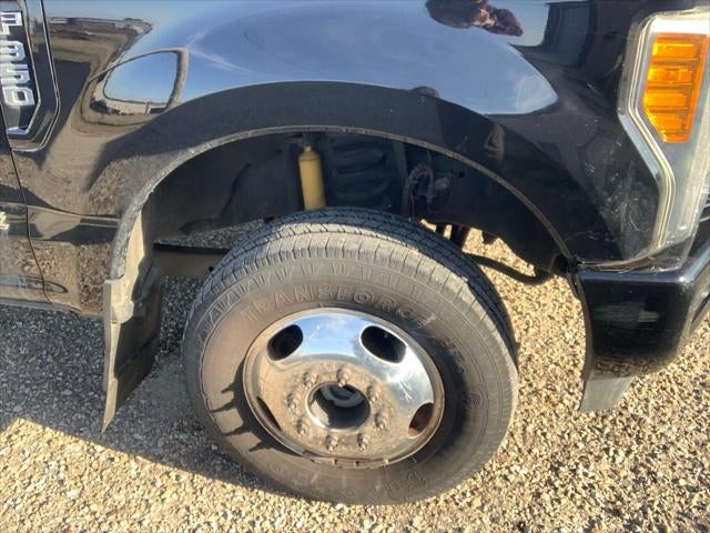 This 2017 Ford F-350SD Lariat in Shadow Black comes nicely equipped with the following features: Power Stroke 6.7L V8 DI 32V OHV Turbodiesel TorqShift 6-Speed Automatic 4WD FX4 Off-Road Package (Colored Front & Rear Rancho Branded Shocks, Hill Descent Control, and Unique FX4 Off-Road Box Decal), GVWR: 14,000 lb Payload Package, Lariat Ultimate Package (Ambient Lighting, Automatic High Beam, Easy Entry®/Exit Memory Driver's Seat Feature, Intelligent Access w/Push-Button Start, LED Box Lighting, Memory Power-Adjustable Pedals, Power Heated/Cooled Driver Seat w/Memory, Power Heated/Cooled Passenger Seat, Power Telescoping/Tilt Steering Wheel/Column, PowerScope Trailer Tow Mirrors w/Memory, Remote Start System, Remote Tailgate Release, Tailgate Step & Handle, Twin Panel Power Moonroof, and Voice-Activated Navigation), Order Code 628A, 4WD, 3.55 Axle Ratio, Rear CHMSL Camera, 10 Speakers, 110V/400W Outlet, 17 Forged Polished Aluminum Wheels, 4-Wheel Disc Brakes, 6 Angular Chrome Extended Running Boards, ABS brakes, Adjustable pedals, Air Conditioning, All-Weather Floor Mats, Alloy wheels, AM/FM radio: SiriusXM, Auto-dimming Rear-View mirror, Automatic temperature control, Brake assist, Bumpers: chrome, CD player, Compass, Delay-off headlights, Driver door bin, Driver vanity mirror, Dual front impact airbags, Dual front side impact airbags, Dual rear wheels, Electronic Stability Control, Emergency communication system: SYNC 3 911 Assist, Exterior Parking Camera Rear, Flow-Through Console, Front anti-roll bar, Front Bucket Seats, Front Center Armrest, Front dual zone A/C, Front fog lights, Front Leather Seating Surfaces 40/Console/40, Front reading lights, Fully automatic headlights, Heated door mirrors, Illuminated entry, Leather steering wheel, Low tire pressure warning, Outside temperature display, Overhead airbag, Overhead console, Panic alarm, Passenger door bin, Passenger vanity mirror, Power door mirrors, Power driver seat, Power passenger seat, Power steering, Power windows, Radio data system, Radio: Premium Sony Audio w/Single-CD/MP3 Player, Rear anti-roll bar, Rear Parking Sensors, Rear reading lights, Rear seat center armrest, Rear step bumper, Rear window defroster, Remote keyless entry, Security system, SiriusXM Radio, Speed control, Split folding rear seat, Steering wheel mounted audio controls, SYNC 3 Communications & Entertainment System, Tachometer, Telescoping steering wheel, Tilt steering wheel, Traction control, Trip computer, Turn signal indicator mirrors, and Variably intermittent wipers.