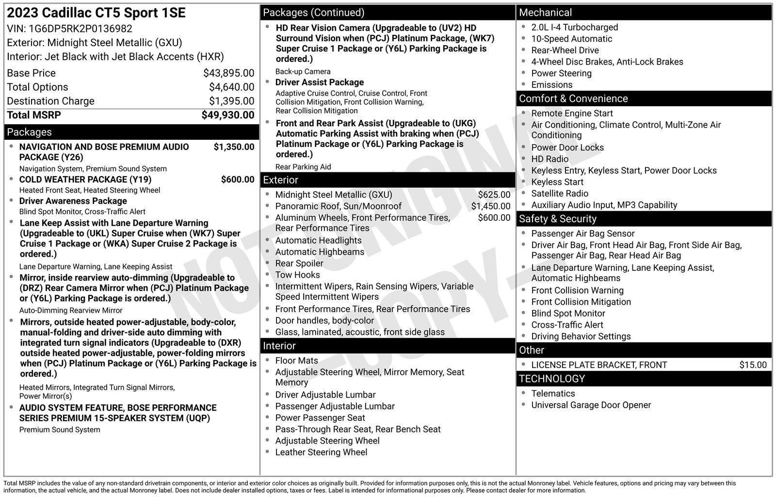 - Navigation and Bose Premium Audio Package